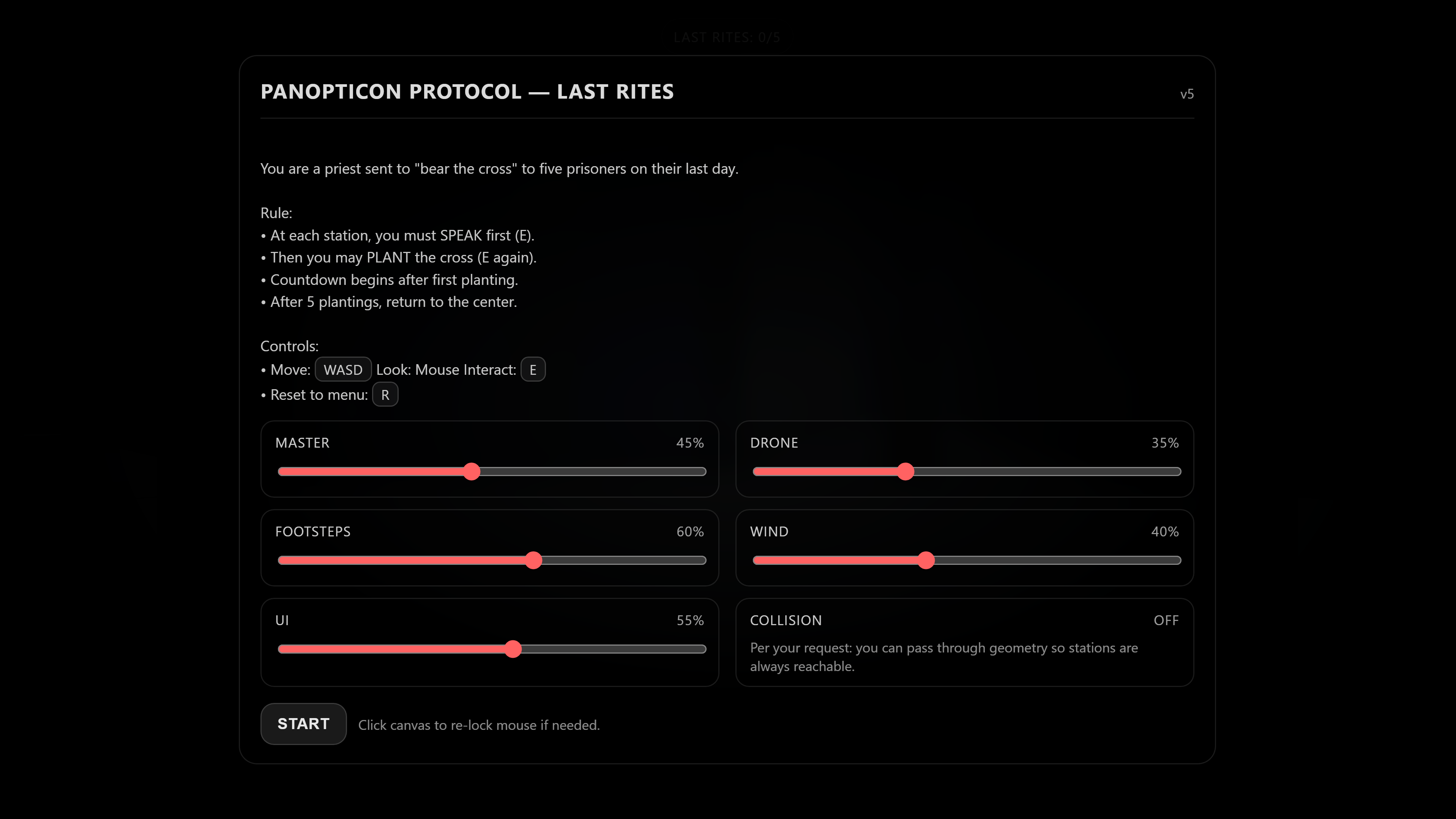 V0.1 _ there is a bug where the door to exit the first room is invisible/covered/obscured. The door is interactable(ui popup will appear) and function(door open/closes and can be traversed through). The location of the door is directly in front of you from the original spawn point.